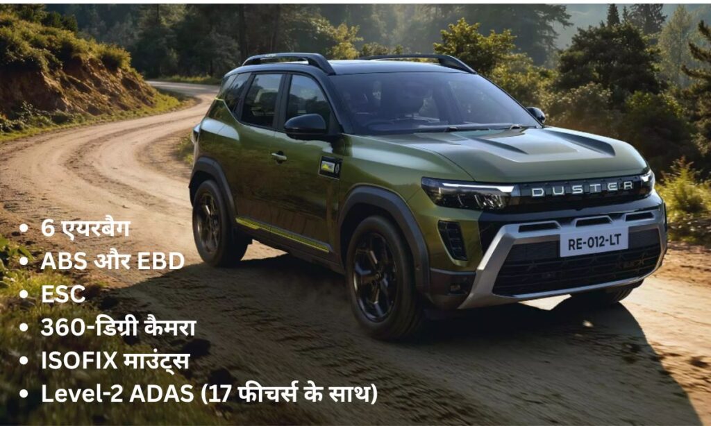 सेफ्टी के मामले में भी Duster पीछे नहीं है। इसमें मिलते हैं: